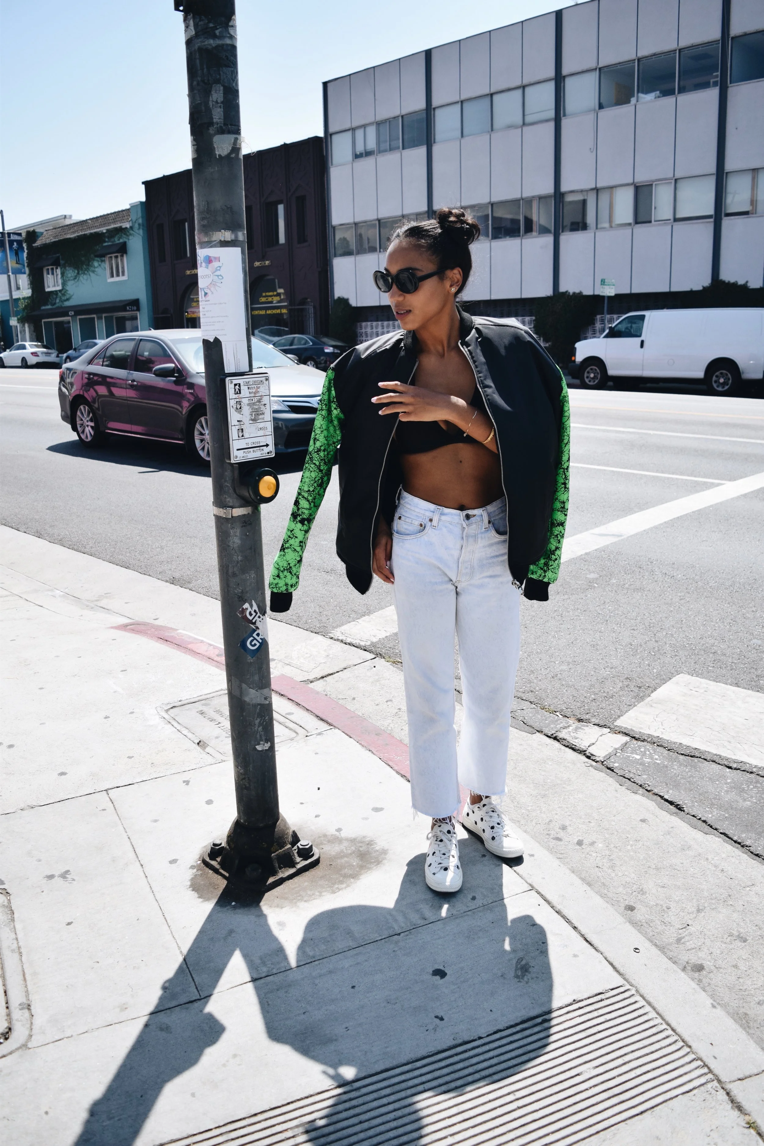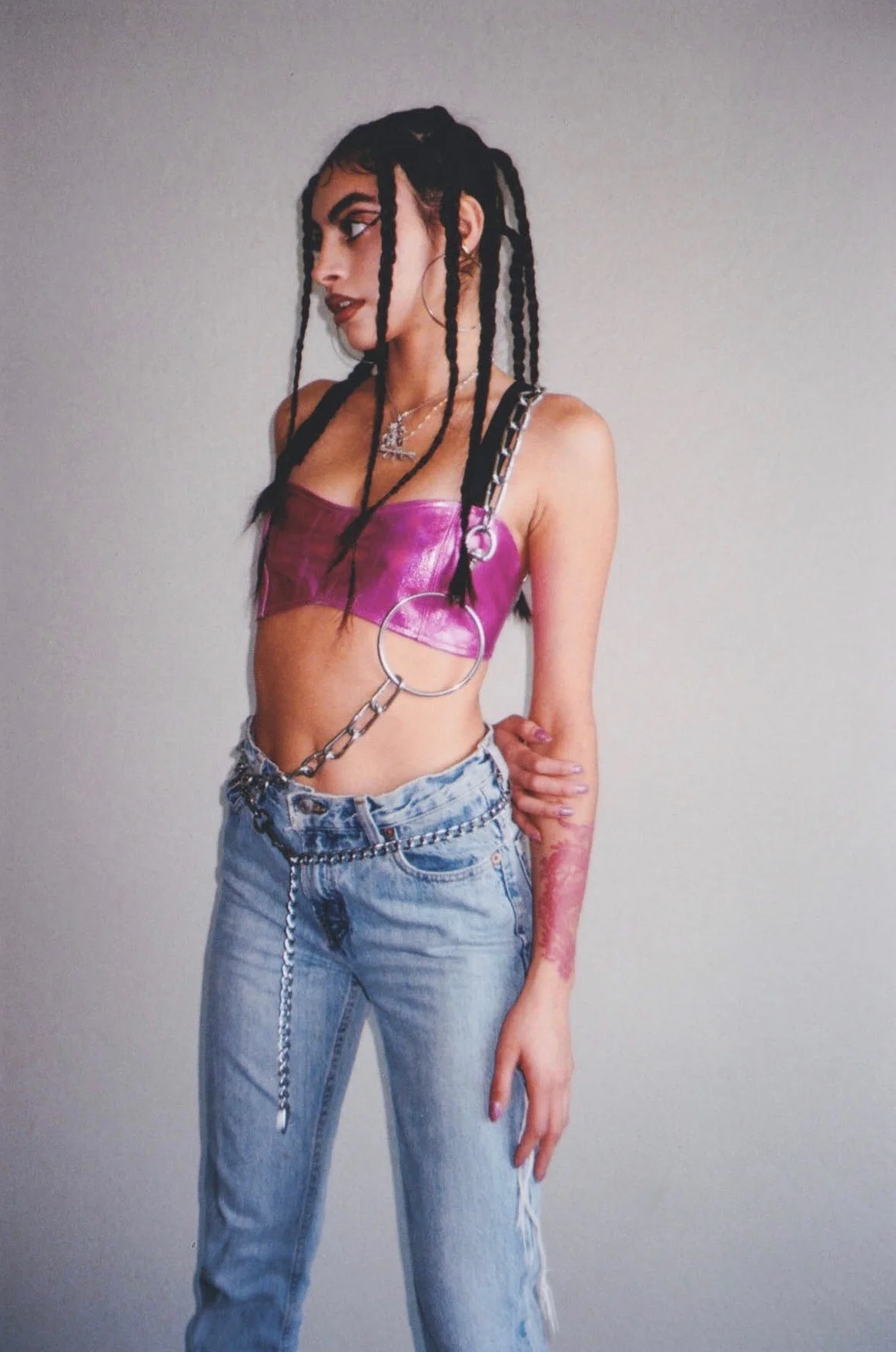 Look 3: Agent Provocateur Bra, Y/Project Wide Leg Jean, Vintage Chanel Sunglasses
