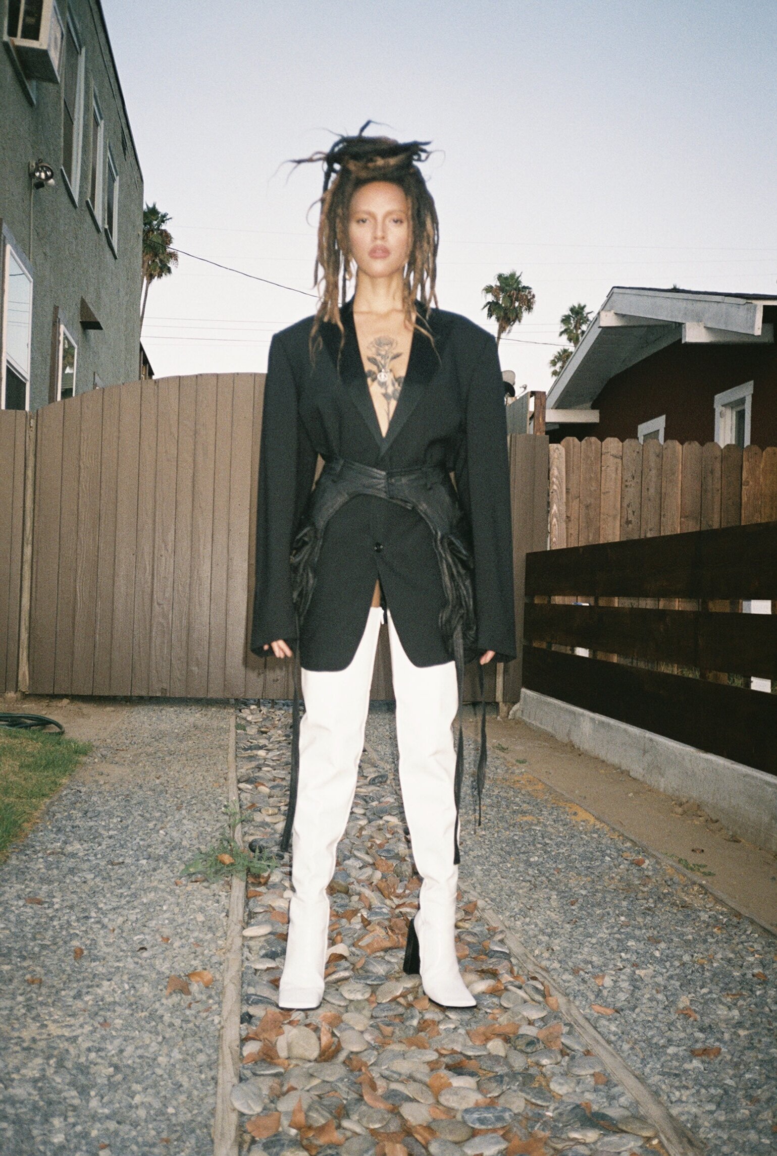 Look 1: Dolche & Gabbana Blazer, Vintage Leather Pocket Chaps, Balenciaga Boots